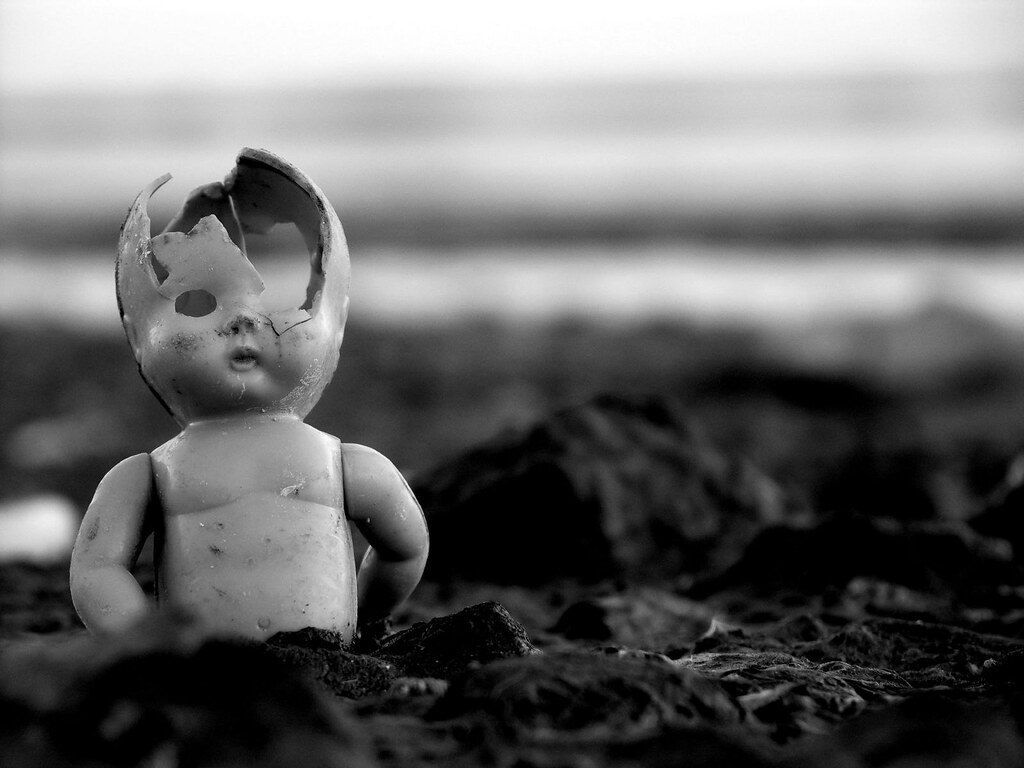 une poupée désaxée traînée, …